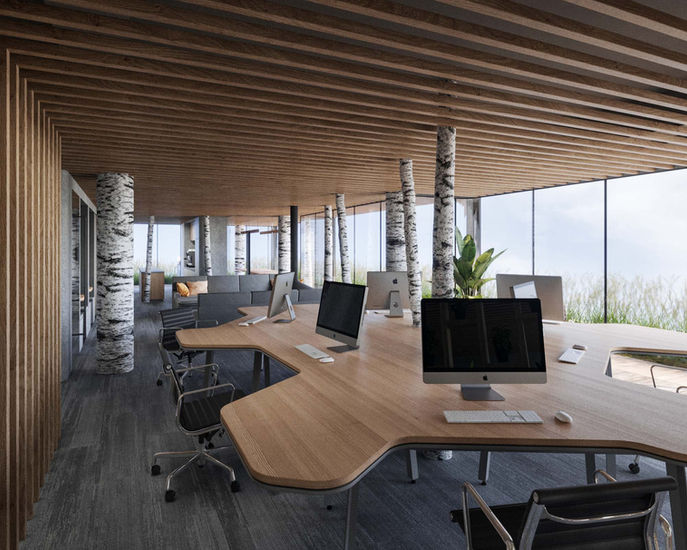 Corn processing company, Hungrana approached us with a request to design an IT department for their processing facility near Budapest. We designed a simple and functional space that creates a homely atmosphere for the employees. Selected materials have a warm and neutral hue with highlights of birch trunks.